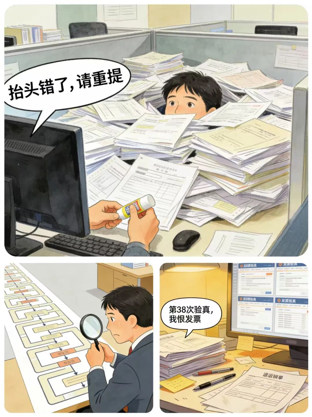 老板审批靠刷脸,财务核验靠肉眼。一天下来,全是“校对员”的活。